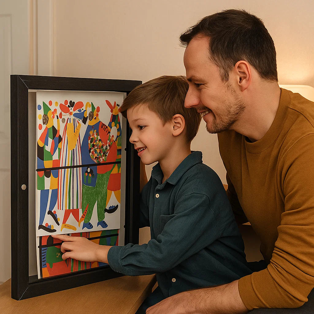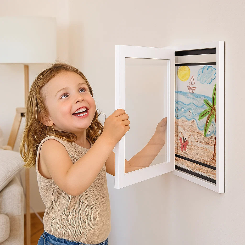 - 📚 Kätketyn aarteen säilytys: Säilytä jopa 50 piirustusta kehyksen sisälle ja tee siitä muistoarkisto lapsesi luovasta matkasta.
