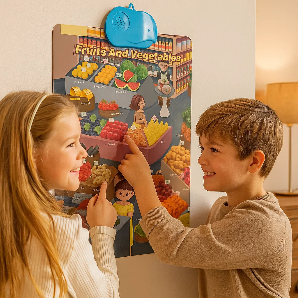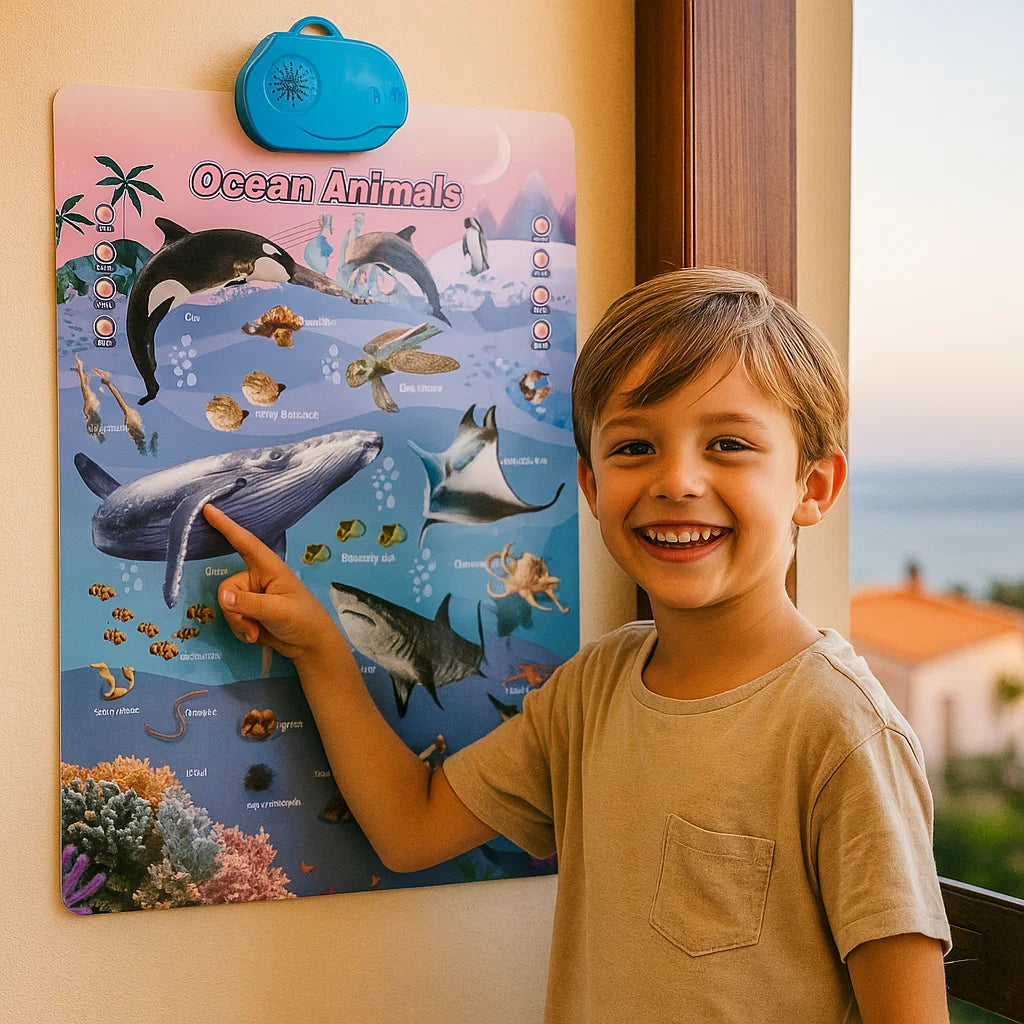 Käännä jokapäiväinen leikki jännittäväksi oppimisseikkailuksi Interaktiivisen ääniseinän avulla lapsille. Tämä uteliaita mieliä vangitsemaan suunniteltu puhuva juliste tutustuttaa lapset eläinten, esineiden ja luonnon eloisaan maailmaan äänen ja kuvien avulla. Vain napauttamalla lapset kuulevat eläinten nimet ja äänet sekä englanninkieliset sanat - näin oppimisesta tulee hauskaa, mukaansatempaavaa ja täysin ilman näyttöä.