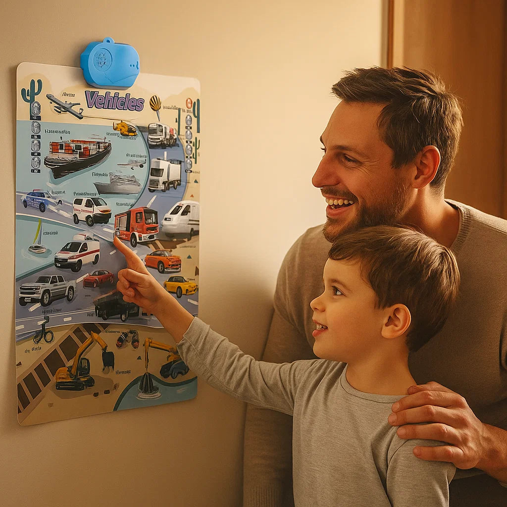 - 🔊 Interaktiivinen Touch-to-Sound Learning: Vain napauttamalla aktivoit äänet ja puhutut sanat, mikä auttaa lapsia yhdistämään luonnollisesti kuvat ja ääntämisen.