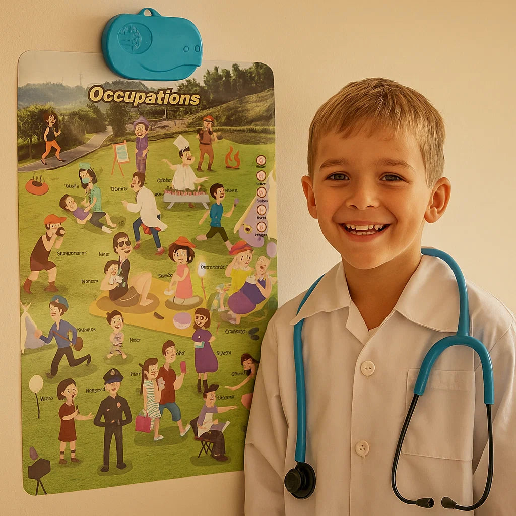 - 🧠 Vahvistaa muistia ja sanavarastoa: Toisto äänen, visuaalisten vihjeiden ja kosketuksen avulla auttaa lapsia muistamaan ja tunnistamaan uusia sanoja vaivattomasti