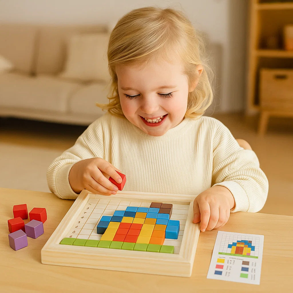 Kytke lapsesi mieli tähän hauskaan ja opettavaiseen puupohjaiseen pikselipalapeliin, joka on suunniteltu edistämään luovuutta ja parantamaan loogista ajattelua. Värikkäiden, laadukkaiden palikoiden ja ruudukkopohjaisen palapelitaulun ansiosta tämä peli tarjoaa loputtomasti mahdollisuuksia kuvioiden tunnistamiseen, värien lajitteluun ja käytännön oppimiseen. Täydellinen lahja kriittisen ajattelun taitojen kehittämiseen leikkimielisesti!