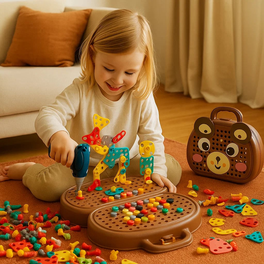 Tämä on enemmän kuin pelkkä lelu - se on tehokas opetusväline, joka muuttaa jokapäiväisen leikin mukaansatempaavaksi oppimiskokemukseksi. Realistisen sähköisen ruuvimeisselin ja värikkäiden rakennuspalikoiden avulla lapset viihdyttävät itseään ja oppivat samalla arvokkaita STEM-taitoja.