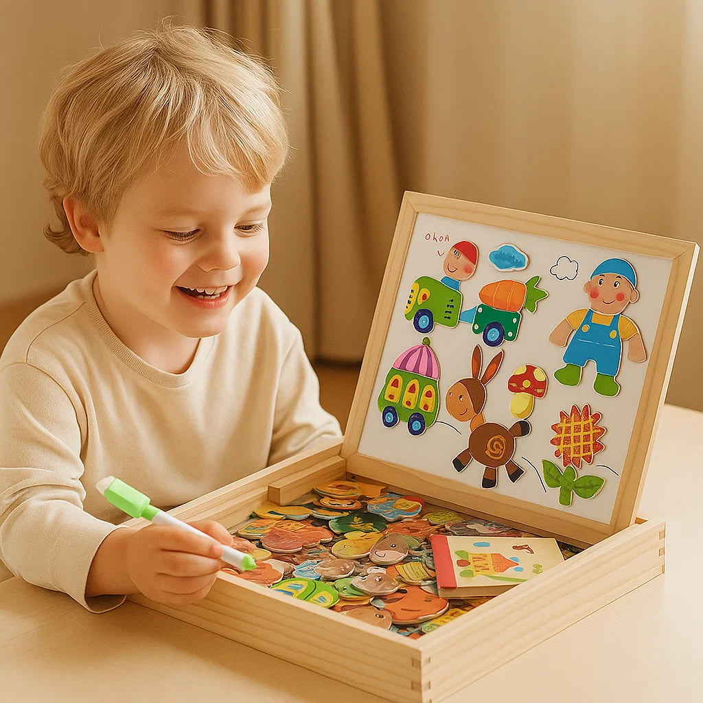 Magneettinen palapelilauta lapsille | Luova oppimislelu, jossa on piirustus- ja muotojen yhdistämisominaisuuksia