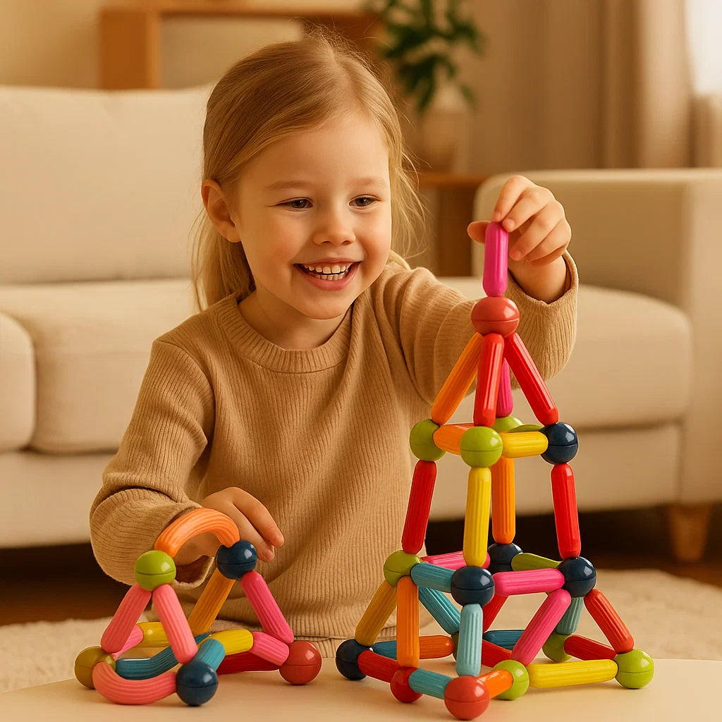 Vapauta luovuuden maailma magneettisella rakennussarjalla, joka herättää lapsesi rohkeimmat ideat henkiin. Jokainen värikäs pala yhdistyy tyydyttävällä naksahduksella, mikä muuttaa leikkiajan käytännön seikkailuksi ongelmanratkaisun, suunnittelun ja tilatietoisuuden parissa. Tämä avoin lelu, jossa ei tarvita sääntöjä tai näyttöjä, antaa nuorille rakentajille mahdollisuuden ajatella isosti, rakentaa fiksusti ja leikkiä ilman rajoja