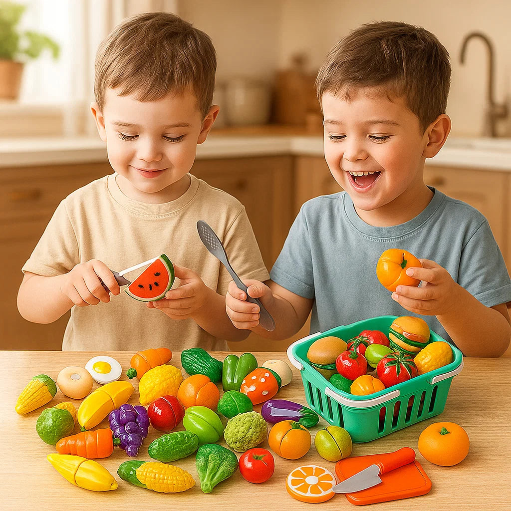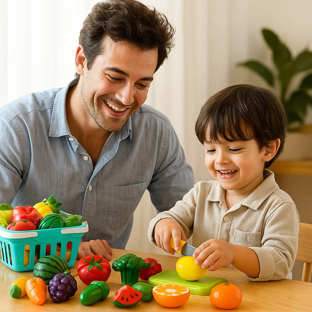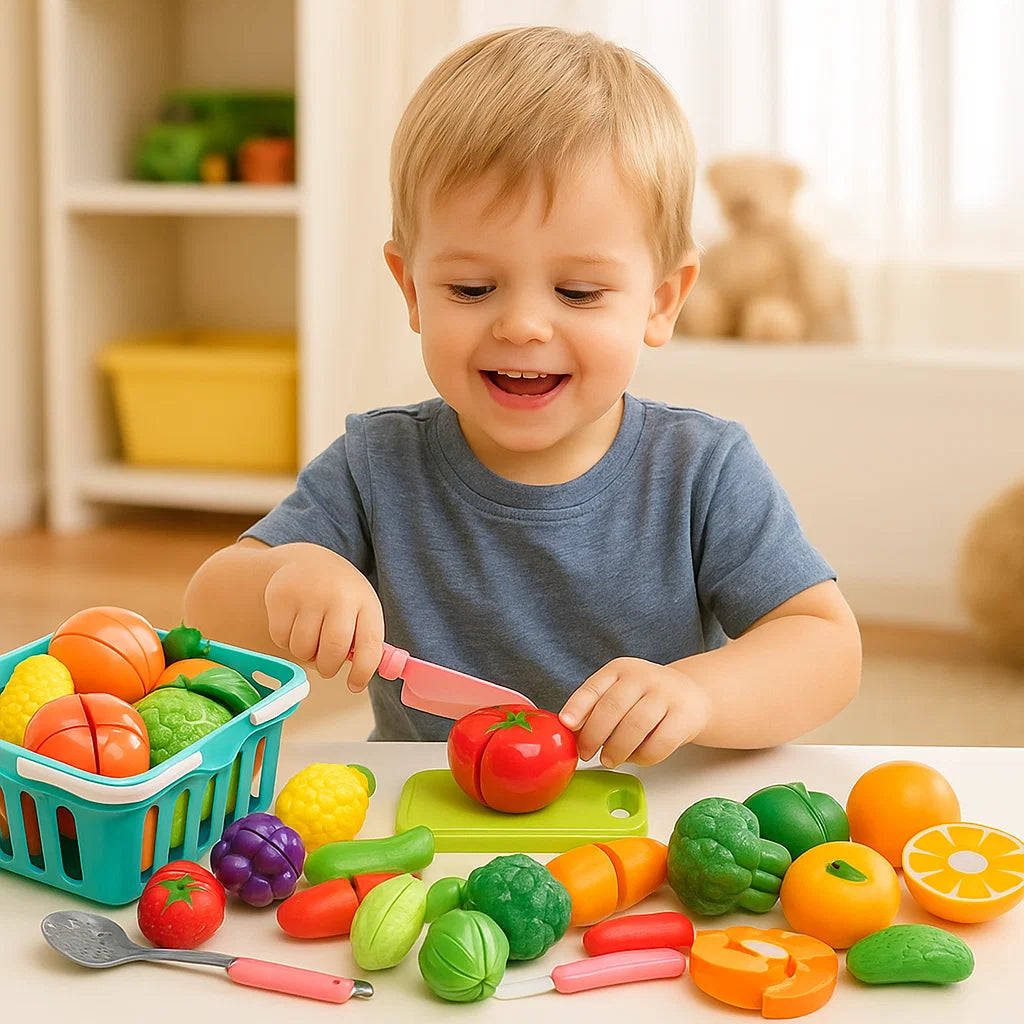 Täydellinen sekä yksin- että ryhmäleikkeihin, setti tukee leikkisästi varhaisia kehityksen virstanpylväitä. Lapset kehittävät kielellisiä taitojaan nimeämällä hedelmiä ja vihanneksia, vahvistavat sosiaalisia siteitä teeskentelemällä jakamista ja yhteistyötä ja terävöittävät ajatteluaan ongelmanratkaisulla roolileikin aikana. Kun lapset kasvavat, lelu tarjoaa edelleen ikätasolle sopivia oppimiskokemuksia, joissa yhdistyvät hauskuus ja perustaitojen kehittäminen
