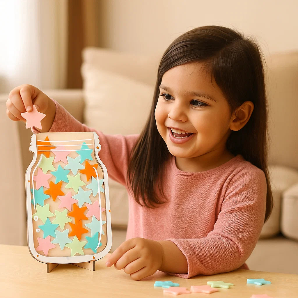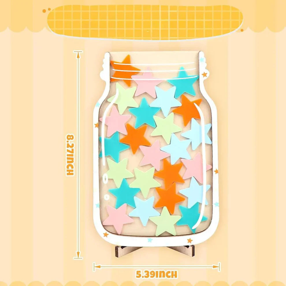 Helpota lastasi rakentamaan itseluottamusta, vastuuntuntoa ja rakkautta oppimiseen lasten Tähtipalkintopurkin avulla. Värikkääksi ja vuorovaikutteiseksi motivaatiovälineeksi suunniteltu tähdillä täytetty purkki tekee positiivisesta vahvistamisesta hauskaa, visuaalista ja syvästi palkitsevaa. Olipa kyse sitten kotitöiden suorittamisesta, ystävällisyyden osoittamisesta tai koulutyöskentelyyn keskittymisestä, jokaisesta ansaitusta tähdestä tulee ylpeä edistyksen symboli - ja iso askel kohti parempia tapoja.