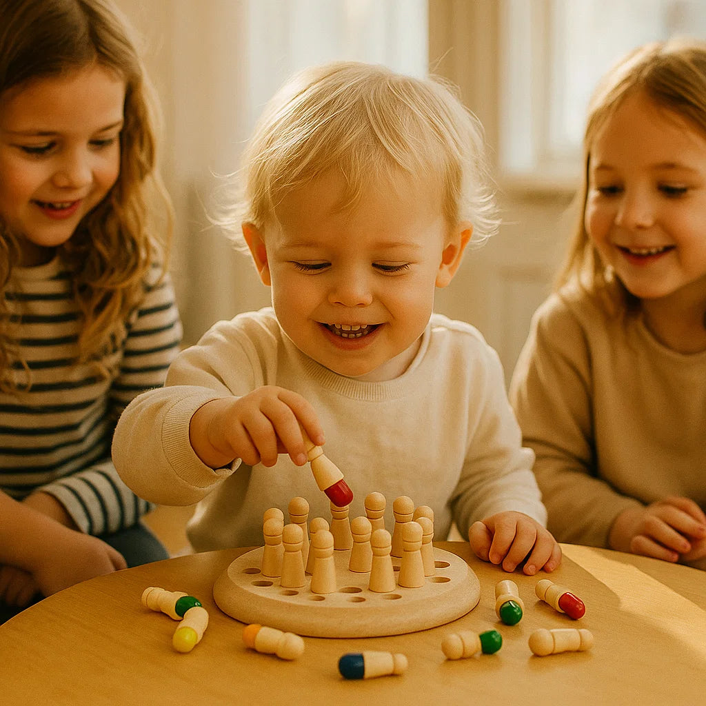 Lapsille tarkoitettu Värien yhdistämisen muistipeli on enemmän kuin pelkkä lelu - se on hauska, vuorovaikutteinen tapa, jolla lapset voivat terävöittää keskittymiskykyään, vahvistaa loogista ajattelua ja lujittaa siteitä perheenjäseniin. Tämä lautapeli on valmistettu ensiluokkaisesta puusta ja suunniteltu eloisilla väreillä. Siinä yhdistyvät viihde ja oppiminen, joten se on täydellinen valinta tuntikausien mielekkääseen leikkiin.