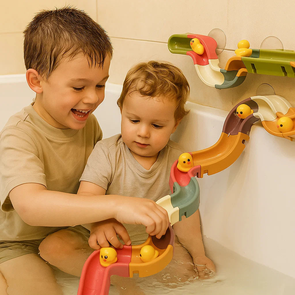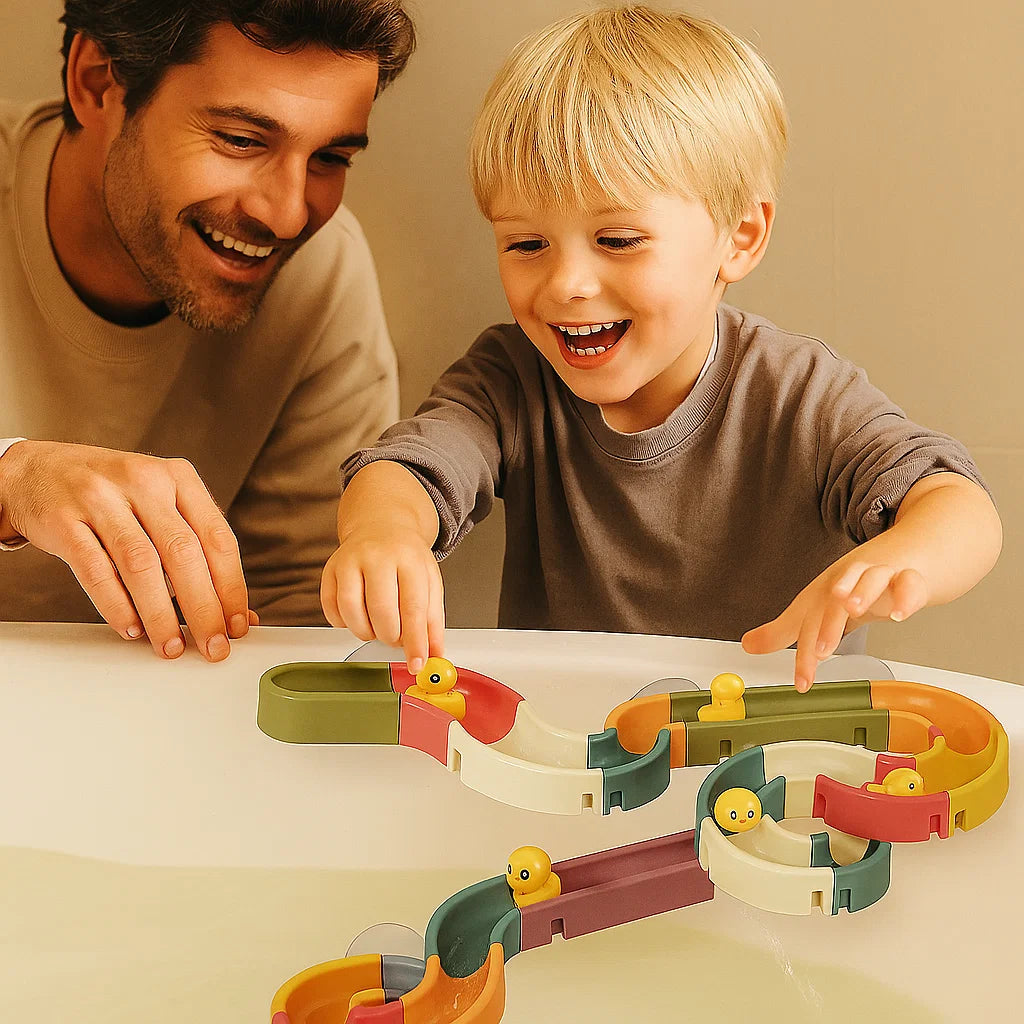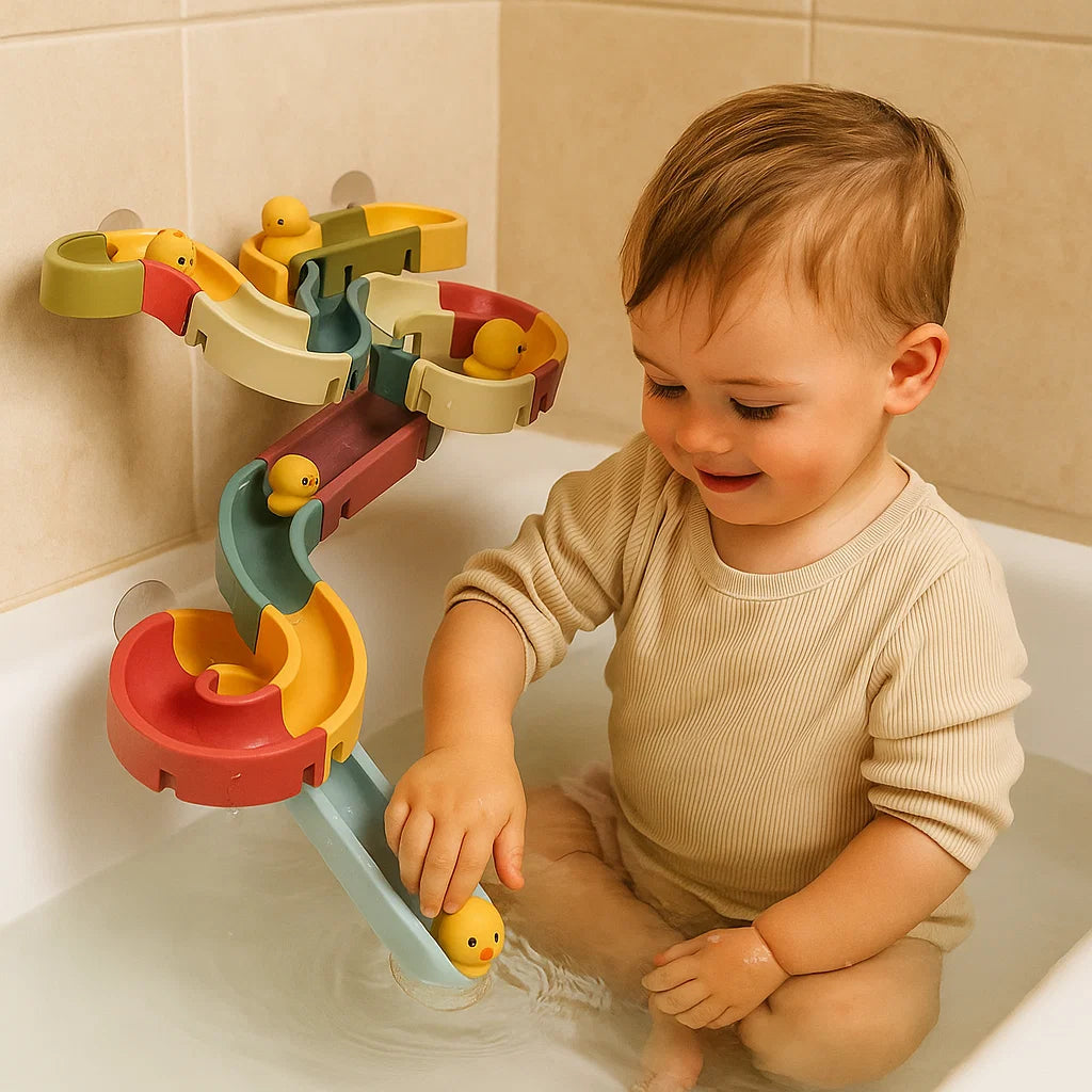 Ja anna lapsesi tutkia ympäristöään ja nauttia tuntikausia kestävästä vuorovaikutteisesta leikistä. Vesiliukumäki-kylpylelu auttaa kehittämään lapsesi kognitiivisia taitoja samalla, kun se tekee kylpyhetkestä vähemmän askaretta ja enemmän seikkailua. Tämä mukaansatempaava peli tarjoaa hauskan tavan tutustuttaa pikkulapset peruskäsitteisiin, kuten liikkeeseen ja suuntaan. Jokaisen liukumäkeä alaspäin suuntautuvan rullan myötä lapsi oppii ymmärtämään syvemmin syyn ja seurauksen - ja samalla hänellä on hauskaa kylvyssä
